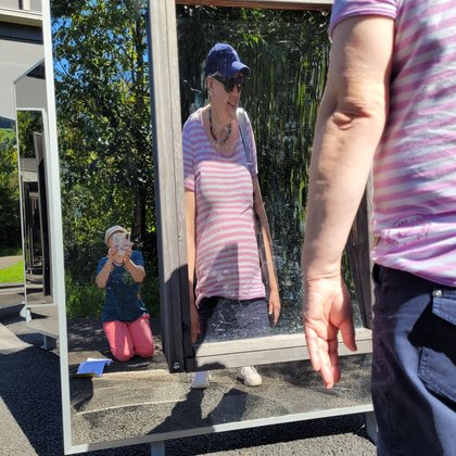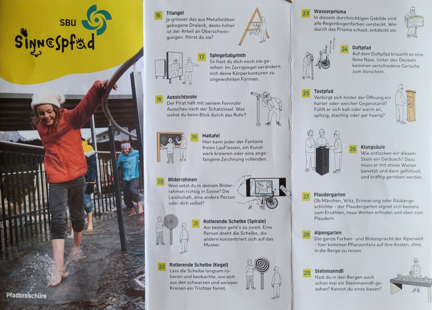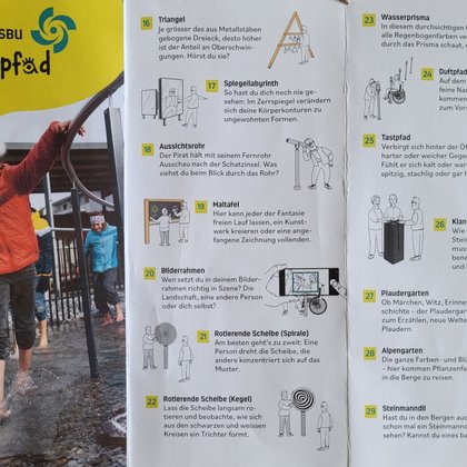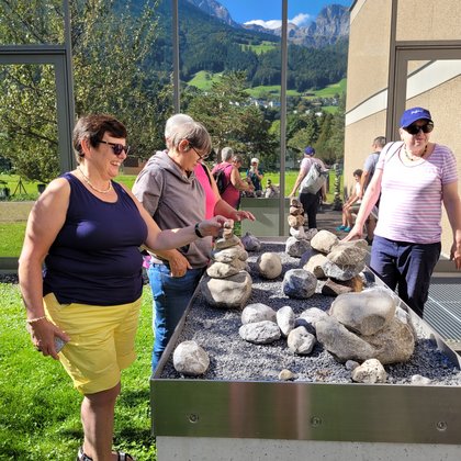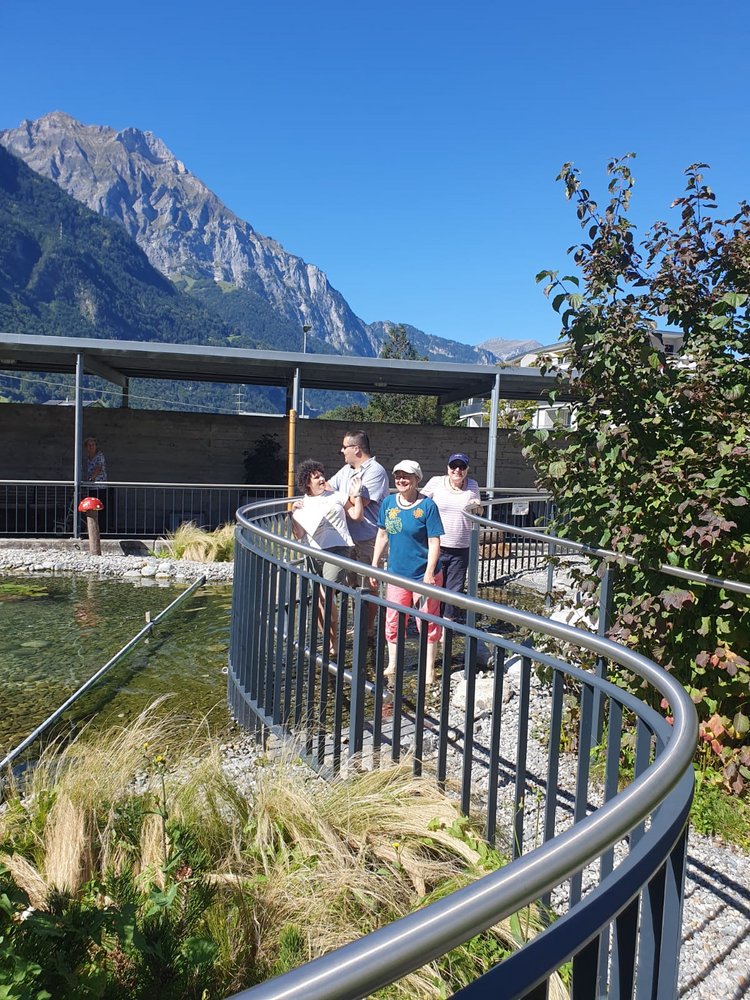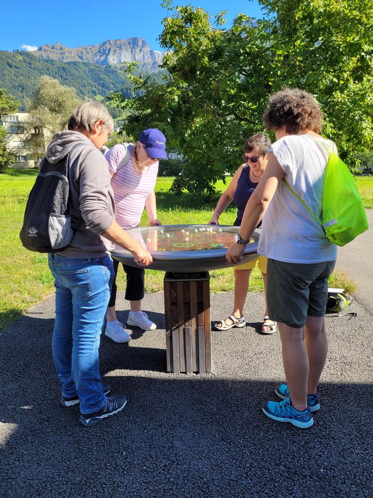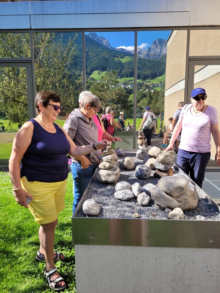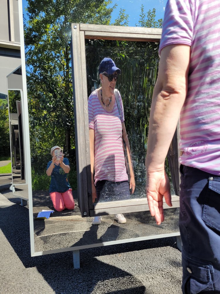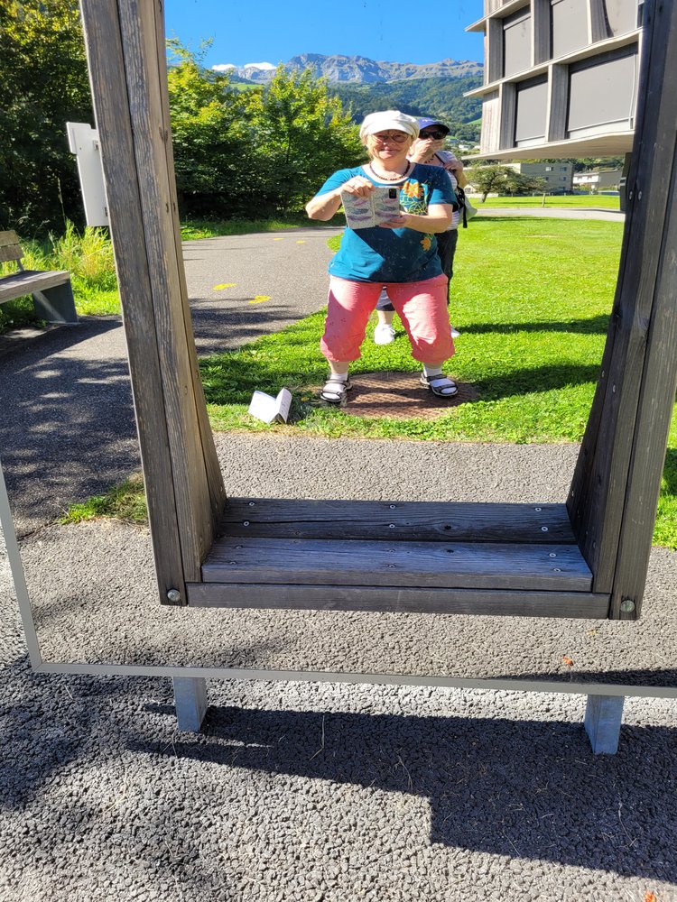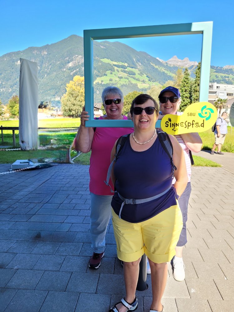 Auf der Wippfläche das Gelichgewicht finden war schwierig und auf dem Balancierpfad zu gehen brauchte schon etwas Mut. Wir lachten über unsere Zerrbilder beim Spiegellabyrinth, schauten auf die rotierenden Scheiben, bis uns fast schwindlig wurde und freuten uns über die regenbogenfarbigen Steine, welche wir durch das Wasserprisma entdecken konnten. Am Memory wetteiferten wir, wer die meisten Paare entdeckt. Da Fazit des Tages: Besucht den Sinnespfad SBU in Schattdorf – er ist einen Ausflug wert. Wir haben uns herrlich unterhalten!