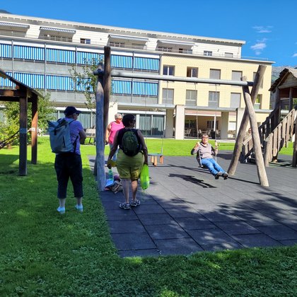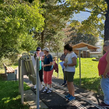 Mit Zug und Bus reiste eine fröhliche Gruppe von Brunnen nach Rüttigarten, Schattdorf. Der Sinnespfad SBU mit seinen 36 Posten war unser Nachmittagserlebnis. Wir hatten 2¾h Zeit –weil wir die Posten jedoch ausgiebig ausprobierten, reichte die Zeit nicht aus für alle… und aufs Zvieri wollte dann doch niemand verzichten!