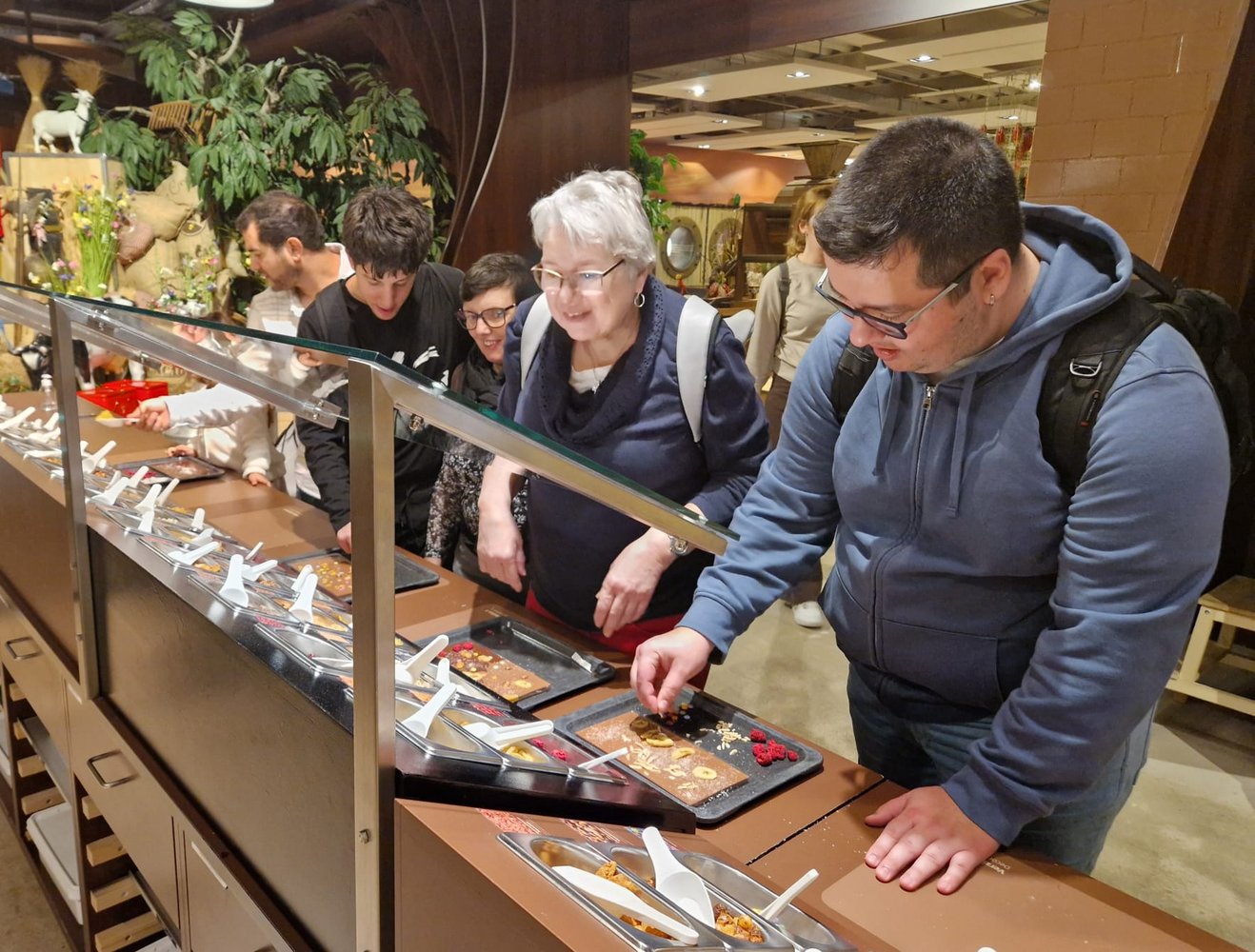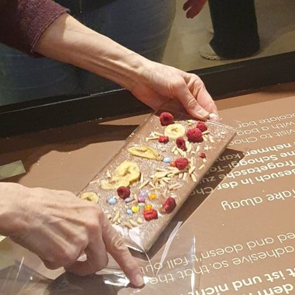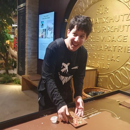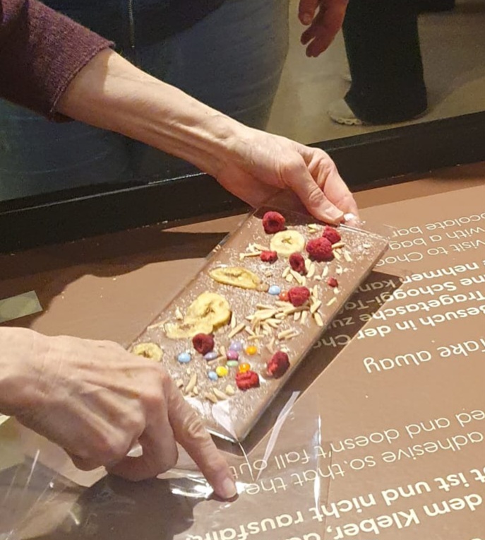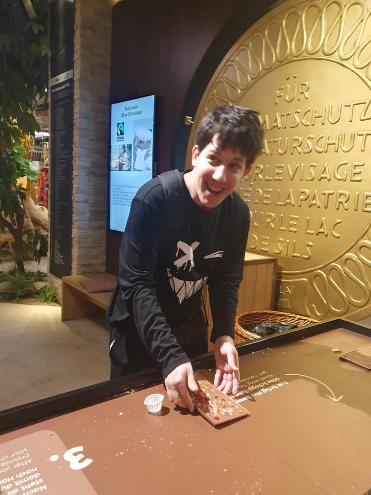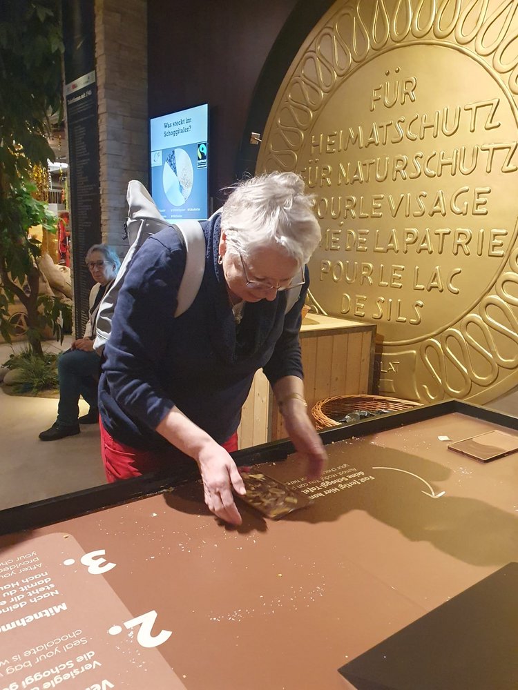 Beim aktuellsten Ausflug der JuJu-Gruppe tauchten wir ein in ein wahres Paradies für Schokoladenliebhaber ein. Der Rundgang durch die Schokowelt von Aeschbach Chocolatier zeigte uns anschaulich den ganzen Herstellungsprozess von der Cacaobohne bis zur fertigen Schokolade. Dabei konnten wir auch nach Herzenslust «schnabulieren» und an verschiedenen Schokoladenzutaten riechen. Einige unter uns kreierten sogar ihre eigene Tafel Schokolade. Ob diese die Heimfahrt überleben würde, war zu diesem Zeitpunkt noch nicht ganz sicher. Anschliessend setzten wir uns im ChocoWelt-Café in einer gemütlichen Runde nieder, bevor wir uns auf den kurzen Spazierweg zum Bahnhof aufmachten, deckten sich die Nachkatzen unter uns mit feiner Schoggi ein um der selbstgemachten eine etwas längere Überlebensdauer zu ermöglichen.